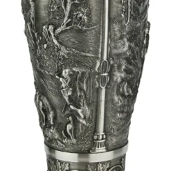 Relief hand painted decoration, gold accents, pewter facon lid and hop thumblift.
