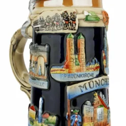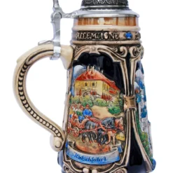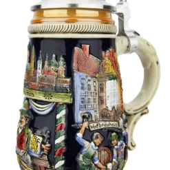 Medieval Holy Roman Emperor Beer Stein Cobalt With Crown Lid
