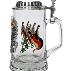 Dimpled Oktoberfest Glass Beer Mug With Flat Pewter Lid 1 Liter
