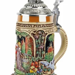 Wedding Beer Stein Antique Style With Pewter Bride And Groom Figure Lid