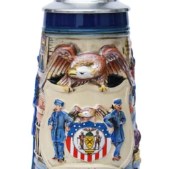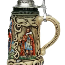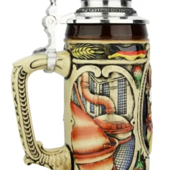 This 0.5 liter hand painted beer stein honors the city of Madrid, Spain with a city scene and 24K gold accents.